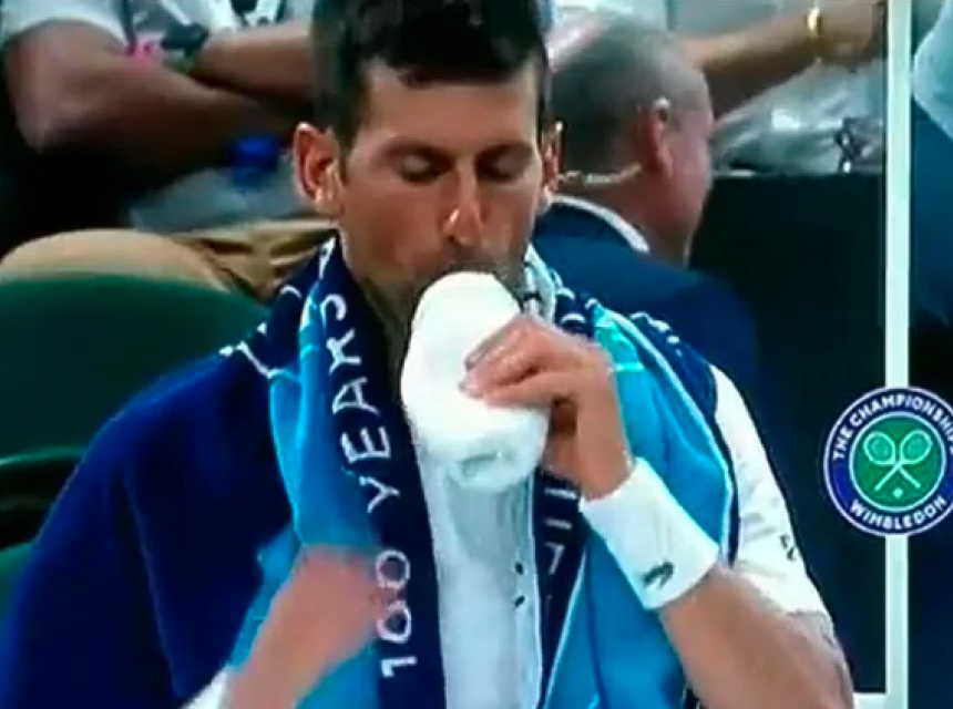 Kolumnista britanskog The Spectatora Damian Reilly je na Twitteru objavio snimak kako u jednoj od pauza Đoković uzima bijelu flašicu i nakon što je nekoliko puta pitao svog trenera da li da je koristi odmah ili kasnije, odlučuje konzumirati njen sadržaj.