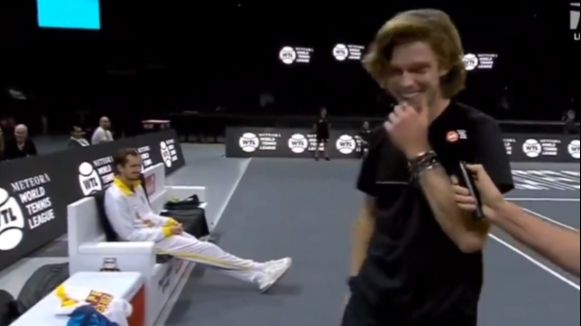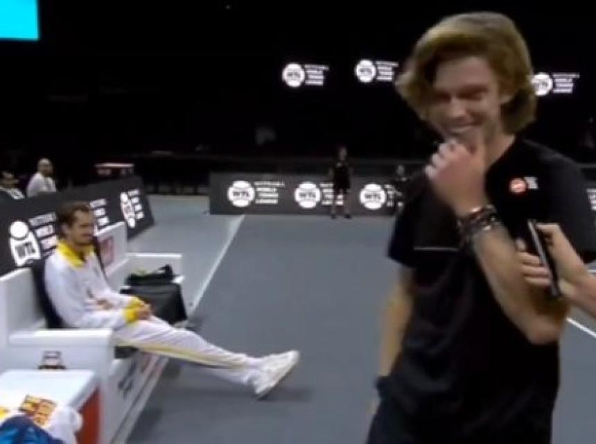 Na meču dublova između Andreja Rubljova i Danila Medvedeva protiv Grigora Dimitrova i Stefanosa Cicipasa (Tsitsipas) odigran je samo jedan set (7:6), ali Rubljov je u centru pažnje iz drugog razloga.