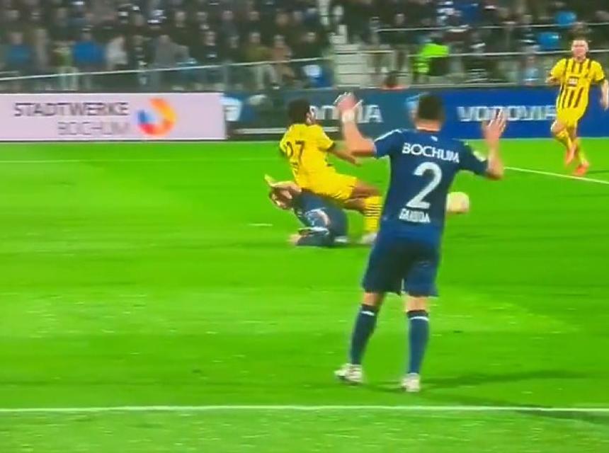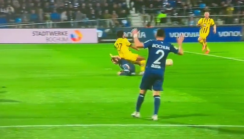 U 65. minuti susreta, pri rezultatu 1:1, Karim Adeyemi je očito fauliran u kaznenom prostoru Bochuma nakon što je odličnom kretnjom zagradio rivala. Ipak, sudija Stegemann nije dosudio penal, a odluku nije promijenila ni VAR ekipa.