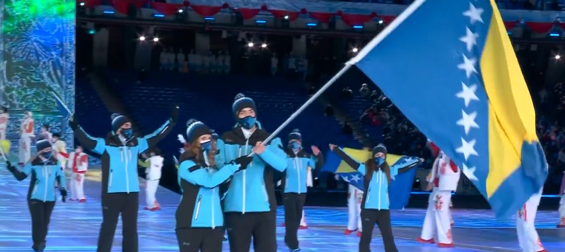 Naravno, na ceremoniji se našla i zastava Bosne i Hercegovine, koju su nosili Mirza Nikolajev i Elvedina Muzaferija.