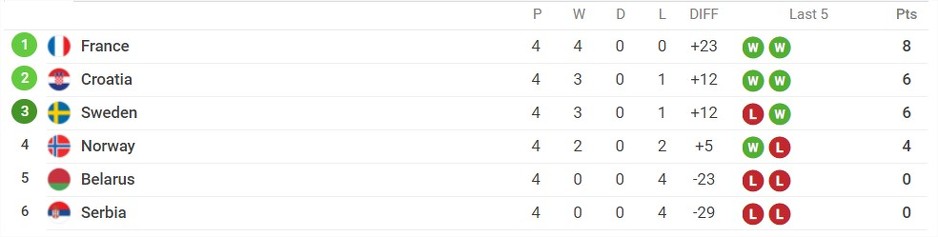 Šveđanima za prolazak u polufinale treba pobjeda nad Norveškom, te da Hrvatska ne savlada Francusku s više od tri pogotka razlike.