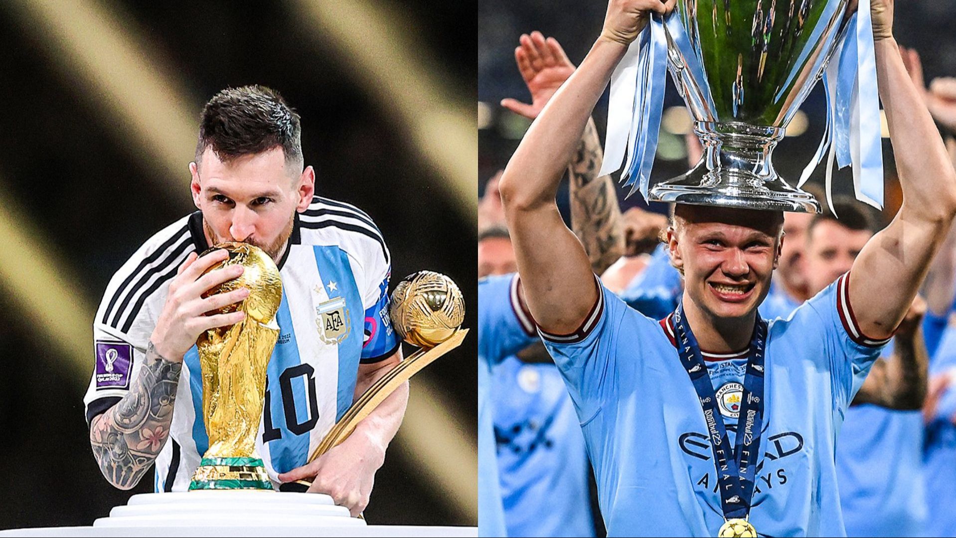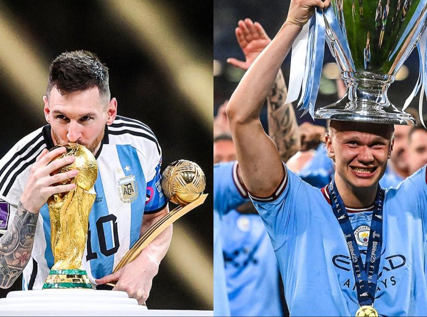 Ove godine dva su imena u fokusu – Erling Haland (Haaland) i Lionel Mesi (Messi). Norveški napadač je odigrao sezonu iz snova s Mančester sitijem, dok je Mesi osvojio Svjetsko prvenstvo s reprezentacijom Argentine i tako došao do jedinog trofeja koji mu je falio.