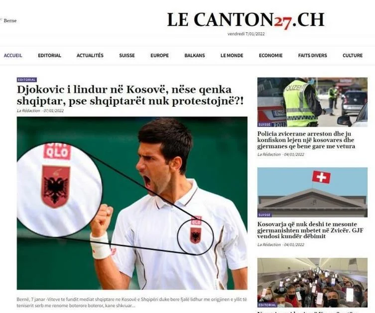 "Đoković je rođen na Kosovu. Ako je Albanac, zašto onda ne protestuju Albanci na Kosovu?Zašto Albanci ne protestuju zbog ovoga što se događa s Novakom u Australiji, kao što to rade Srbi u Melbourneu i Beogradu?", pitaju se Švicarci u tekstu.
