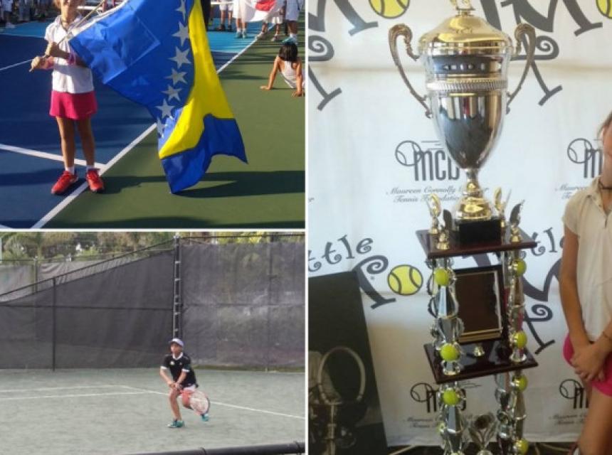 Otišla je u Sjedinjene Američke Države i pokorila svoje vršnjakinje. Tea Kovačević, devetogodišnja teniserka iz Bosanske Gradiške, trijumfovala je večeras u finalu prestižnog turnira 'Little Mo' na Floridi u meču sa vršnjakinjom iz Rumunije Jasminom Marie Stroe rezultatom 2-0, po setovima 6-0, 6-0.