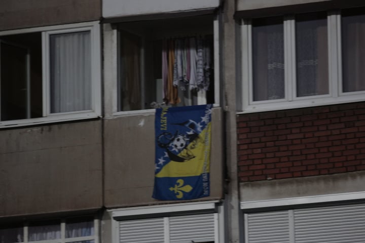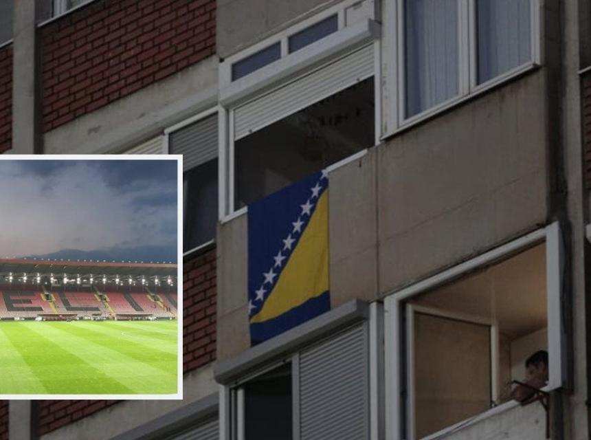 Nažalost, zbog pandemije koronavirusa i mjera nema publike, pa će tribine biti uglavnom prazne i neće biti one prepoznatljive atmosfere kada u Zenici igra bh. reprezentacija, ali naš fotoreporter uočio je postavljene zastave na stanovima okolnih zgrada.