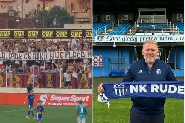 Najvatreniji navijači Hajduka su sredinom prvog poluvremena okačili transperent kojim su izvrijeđali trenera Rudeša, Roberta Prosinečkog.