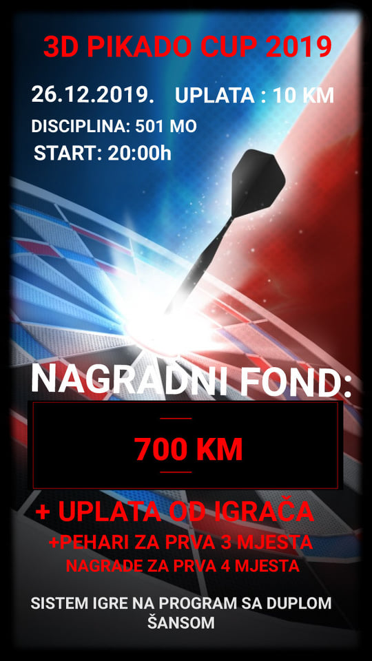 Pored igrača iz našeg grada veliki interes za ovaj turnir pokazali su i drugi igrači iz Unsko-sanskog kantona kao i drugih zemalja regije. Turnir će se održati 26.12.2019. u prostorijama Caffe bara 3D.