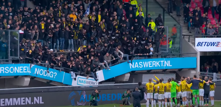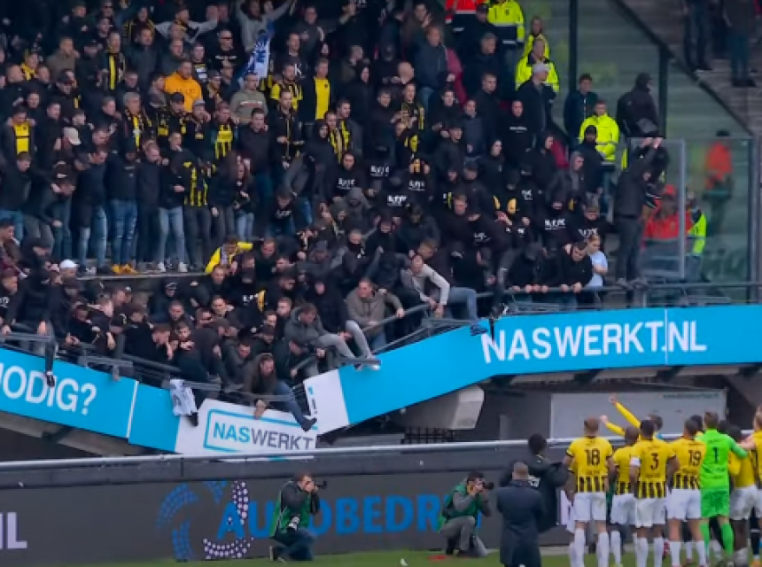 Nakon utakmice NEC - Vitesse u nizozemskoj ligi prethodnog vikenda, gostujućim navijačima dogodila se mala nezgoda, kada je tribina pukla tokom njihovog slavlja.