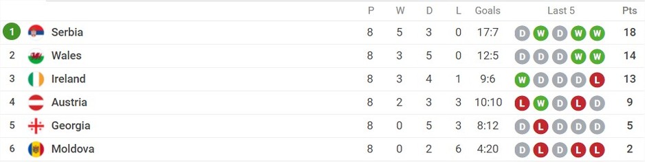 U grupi D Srbija je gostovala kod Irska u direktnom dvoboju za prvo mjesto. Naši istočni susjedi su pogotkom Kolarova iz 55. minute slavili s minimalnih 1:0, a od 68. minute su igrali bez isključenog Maksimovića. Ovom pobjedom Srbija je otvorila širom vrata Svjetskog prvenstva.