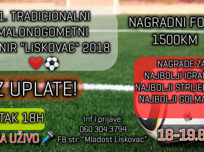 Mladost iz Liskovca, Cazin po prvi put organizuje malonogometni turnir koji će se održati 18. i 19. augusta u Liskovcu.