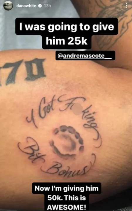 Lima je pobijedio, a od prvog čovjeka UFC-a dobio je nagradu od 25.000 eura jer je ugrižen. No, odlučio se na nevjerovatan potez pa je samo nekoliko sati nakon ugriza odlučio istetovirati to pa mu je White odlučio uduplati prihode i počastiti ga s 50.000 dolara.
