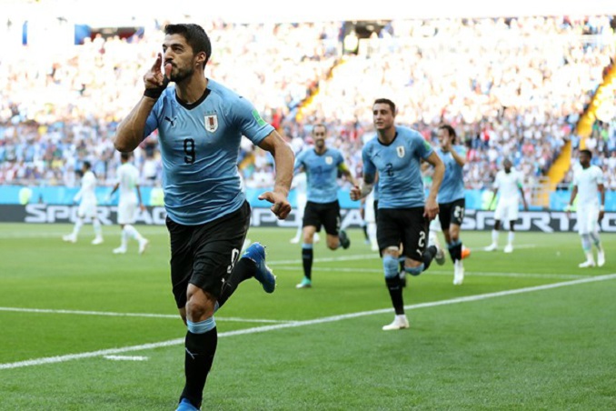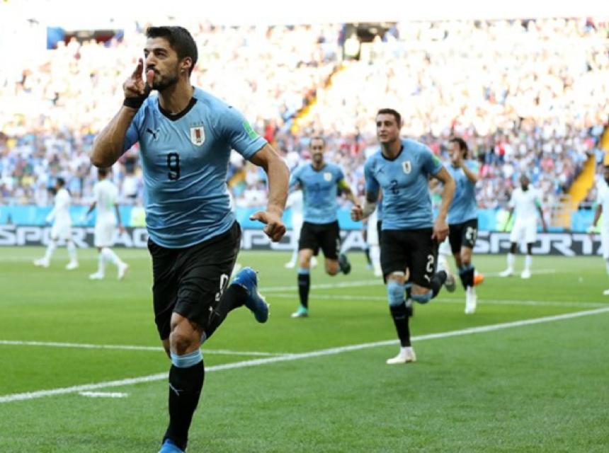 Vodeći pogodak za Urugvaj je postigao Suarez u 23. minuti. Sanchez je izveo korner, golman Saudijske Arabije Al Owais je katastrofalno reagovao i promašio loptu, a Suarezu nij ebilo teško iz peterca poslati loptu u praznu mrežu.