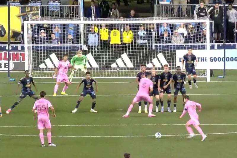 Dosuđen je slobodan udarac na tačno 20 metara od gola domaće ekipe, a jedan igrač Philadelphije se vratio pred svoj gol i pokrio stativu iza živog zida.