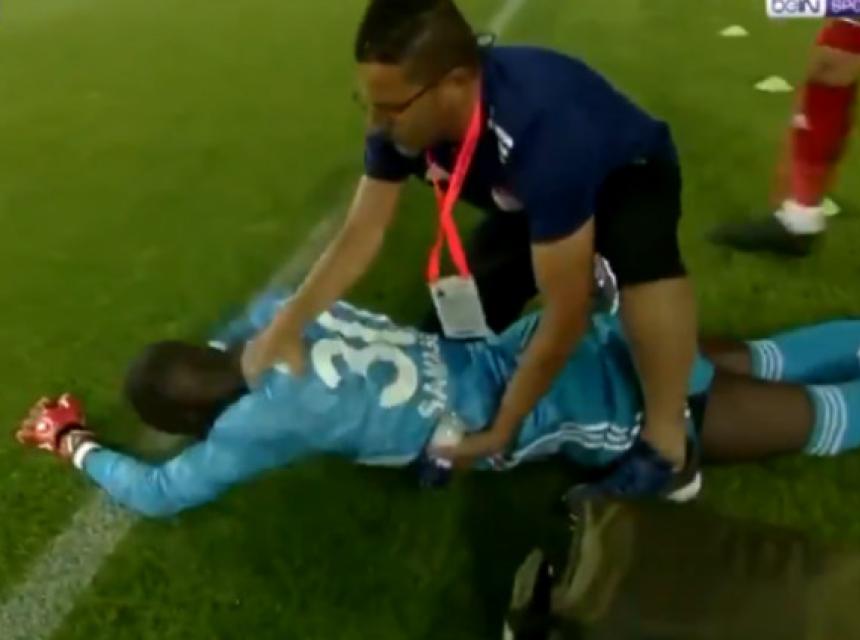 Samasa je pred sam kraj prvog poluvremena dobio udarac od kog je kolabirao, što je samo po sebi djelovalo strašno i morao je napustiti igru.