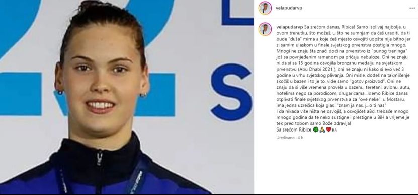 Velibor Pudar, otac najbolje bh. plivačice Lane Pudar, oglasio se danas uoči finalne utrke Svjetskog prvenstva u disciplini 200 metara delfin.