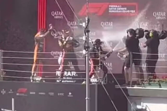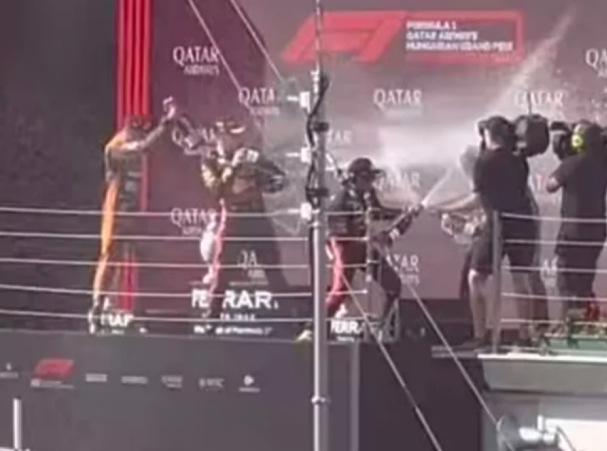 Norris je završio na drugom mjestu iza Verstappena u Mađarskoj danas, a onda je na pobjedničkom podiju slomio trofej pobjednika utrke. Vozač McLarena namjerno je udario bocom šampanjca o podij, a trofej koji je tu stajao pao je s podija i od siline udarca puknuo na više dijelova.