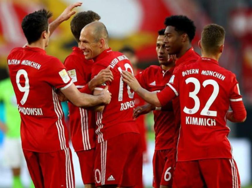 Fudbalski klub Bayern iz Minhena spektakularnom pobjedom od 6:0 na gostovanju kod Wolfsburga odbranio je naslova prvaka Bundeslige, tri kola prije kraja njemačkog prvenstva.