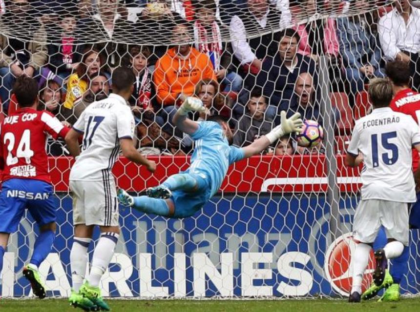 Fudbaleri Real Madrida slavili su danas veoma tešku pobjedu na gostovanju kod Sporting Gijona sa 3:2 u okviru 32. kola španske La Lige.