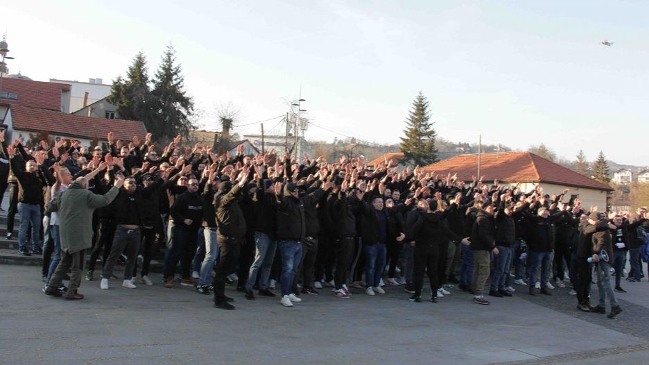 Najvatrenija navijačka grupa svih naših reprezentacija, popularni BH Fanatikosi, su se sakupili na Trgu Slobode odakle odzvanja pjesma "Bosno, ti si šampion".