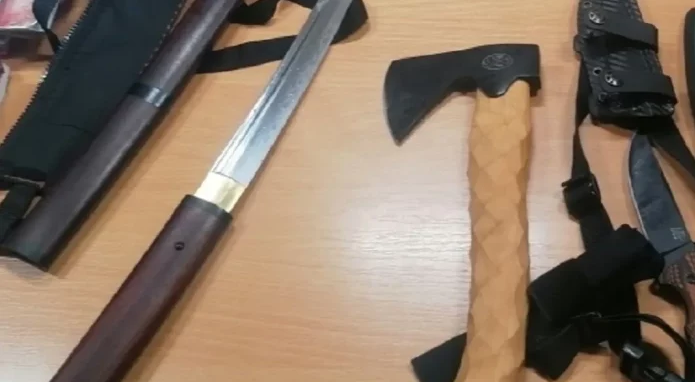 U futroli je bio japanski samurajski mač poznat kao katana, dok su u ostalim skrivenim prostorima pronađena četiri noža, jedna sjekira i plinski pištolj marke “Record mod. 15-9” s pripadajućim okvirom i municijom od pet metaka kalibra 9 mm.