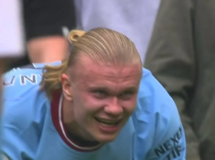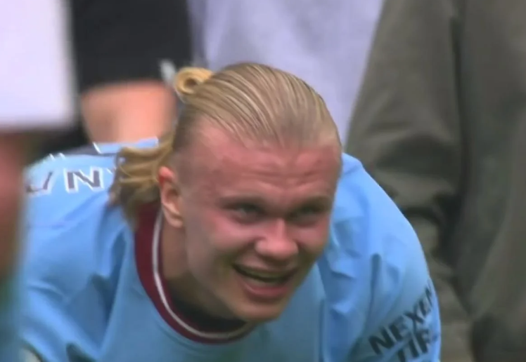 Nakon što je propustio ovu priliku Haaland je ustao o počeo da se smije sam sebi, što samo po sebi pokazuje da nije frustrian zbog ove prilike.