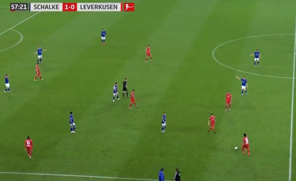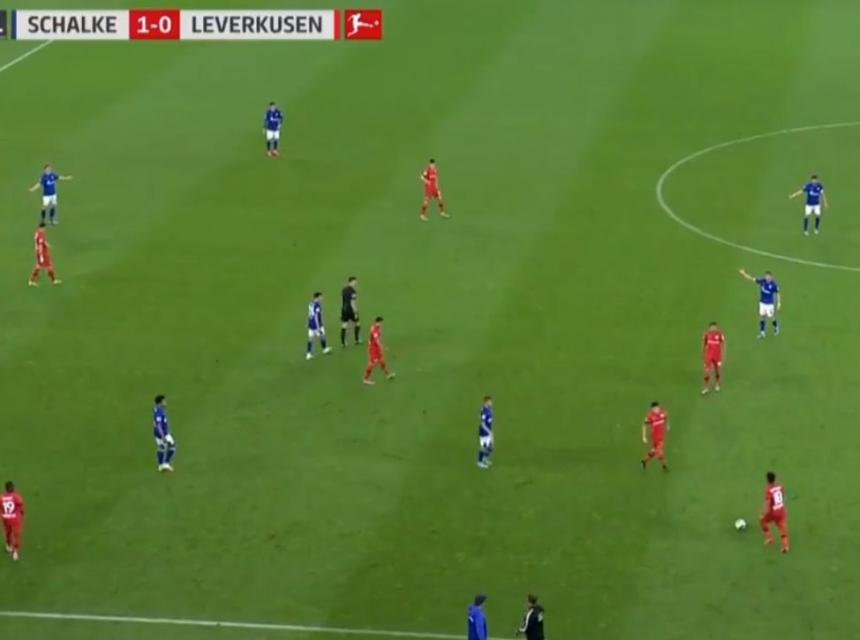 Kad se utakmica nastavila, gosti su vratili loptu domaćinu i dok je lopta išla prema golmanu Schalkea, Alario je to pokušao iskoristiti i izjednačiti. Njegov udarac je obranio Nubel, a nakon toga su domaći igrači poludjeli i napali Alarija. Uslijedilo je koškanje na travnjaku u kojem su Alario, Caligiuri i McKennie dobili po žuti karton.