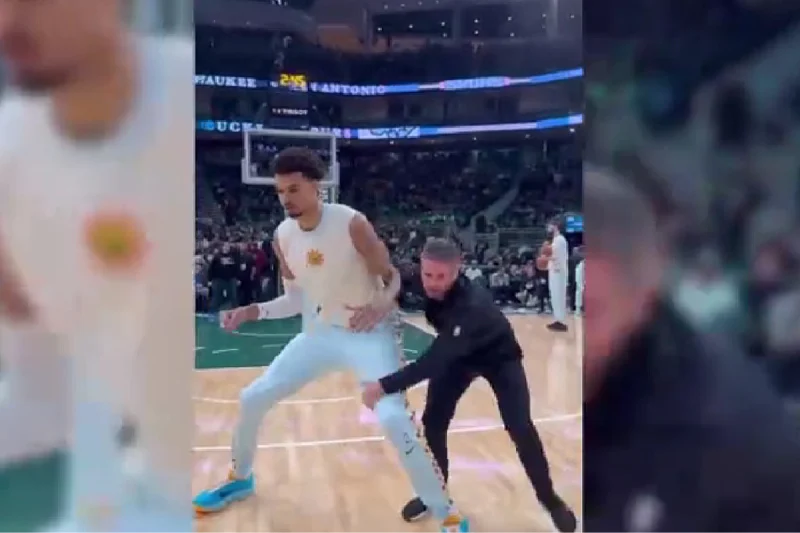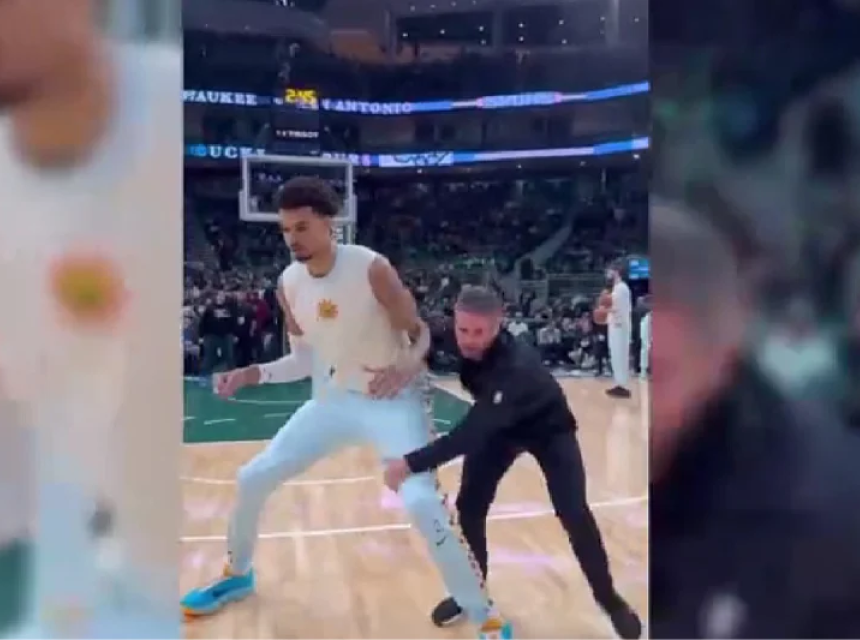 Wembanyama pred utakmicu dobija "batine" od jednog od trenera u stručnom štabu Spursa, koji ga tako sprema za sve izazove koje nosi jedan NBA meč.