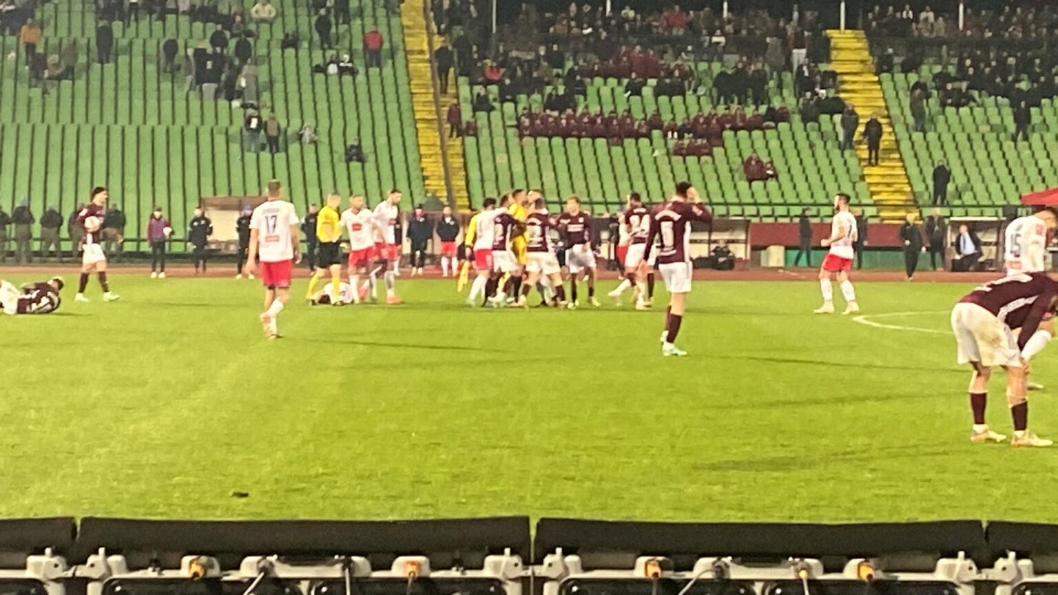 Revanš susret četvrtfinala Kupa BiH između Sarajeva i Borca koji se večeras igrao na Koševu nije završen nakon što su domaći stručni štab i predsjednik Ismir Mirvić ušli na teren, nezadovoljni suđenjem, te su povukli igrače sa terena u sudijskoj nadoknadi.