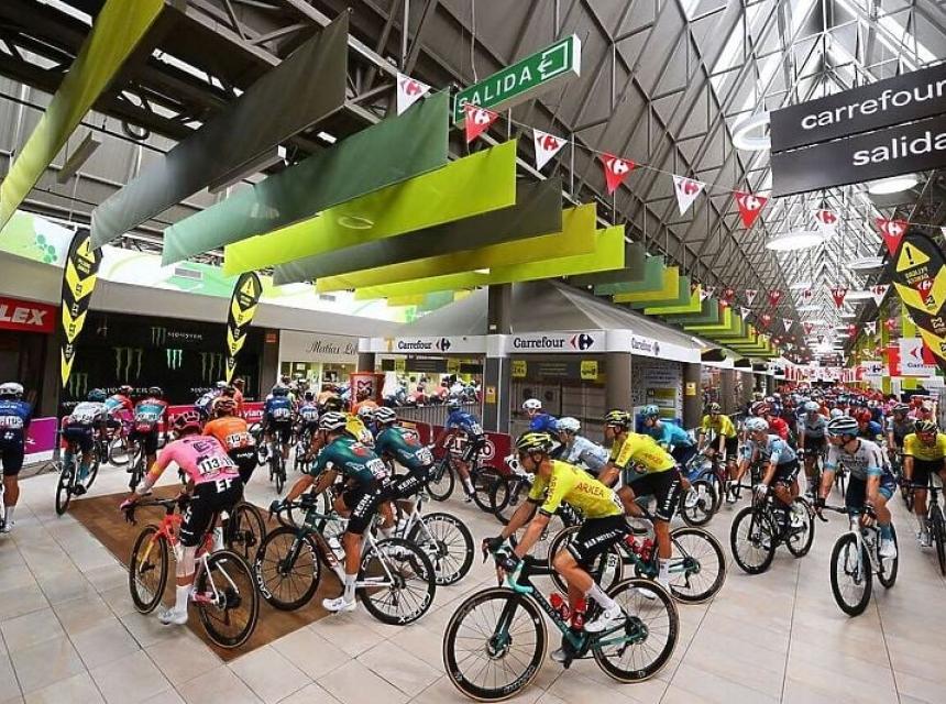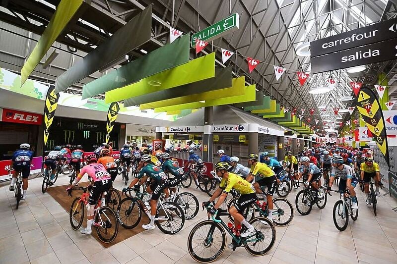 Naime, šesta etapa Vuelte je počela iz tržnog centra pa su tako najbolji svjetski biciklisti krenuli na svoje 185,5 km dugo putovanje s jedne od najneobičnijih pozicija ikada.