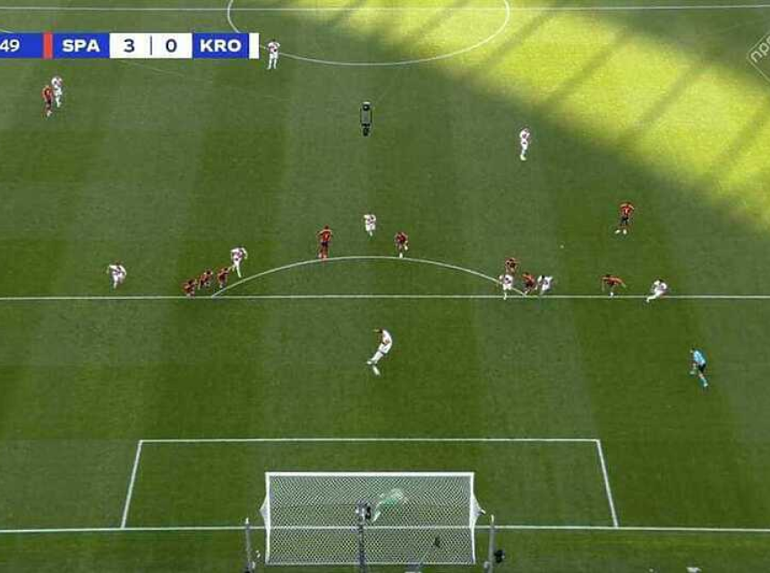 Na ponovljenom snimku je vidljivo bilo da je Ivan Perišić ušao prvi u kazneni prostor Španije, a poslije je nogometaš Hajduka asistirao napadaču Dinama koji je smjestio loptu u mrežu.