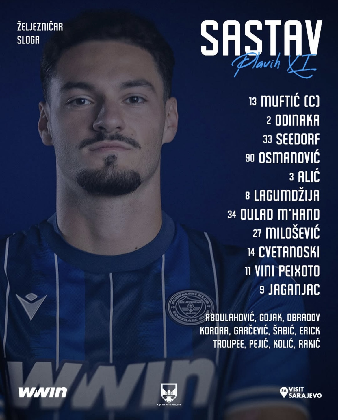 FK Željezničar danas na stadionu Grbavica dočekuje ekipu Sloge u okviru ligaškog kola, a uoči susreta Plavi su objavili početni sastav i potvrdili da je ekipa stigla na stadion spremna za novi izazov.