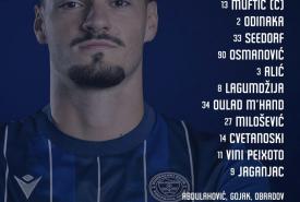 Na klupi za rezervne igrače nalaze se: Abdulahović, Gojak, Obradov, Korora, Garčević, Šabić, Erick, Troupee, Pejić, Kolić i Rakić, koji su spremni da, po potrebi, doprinesu igri u nastavku susreta.