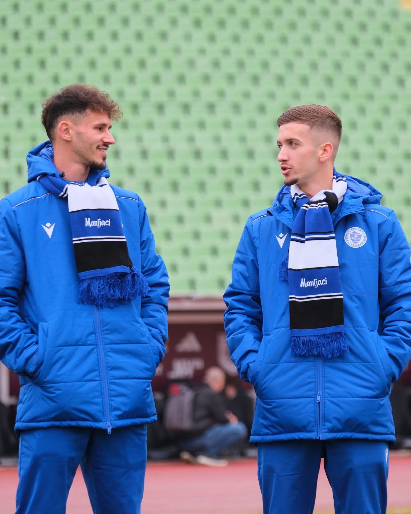 Plavi su na travnjak najvećeg bh. stadiona izašli sa šalovima Manijaka, dajući tako jasnu i snažnu podršku svojim najvatrenijim navijačima koji danas, zbog odluke domaćina, neće biti smješteni na južnoj tribini. Ovaj gest izazvao je veliku pažnju javnosti i dodatno podigao tenzije pred susret.