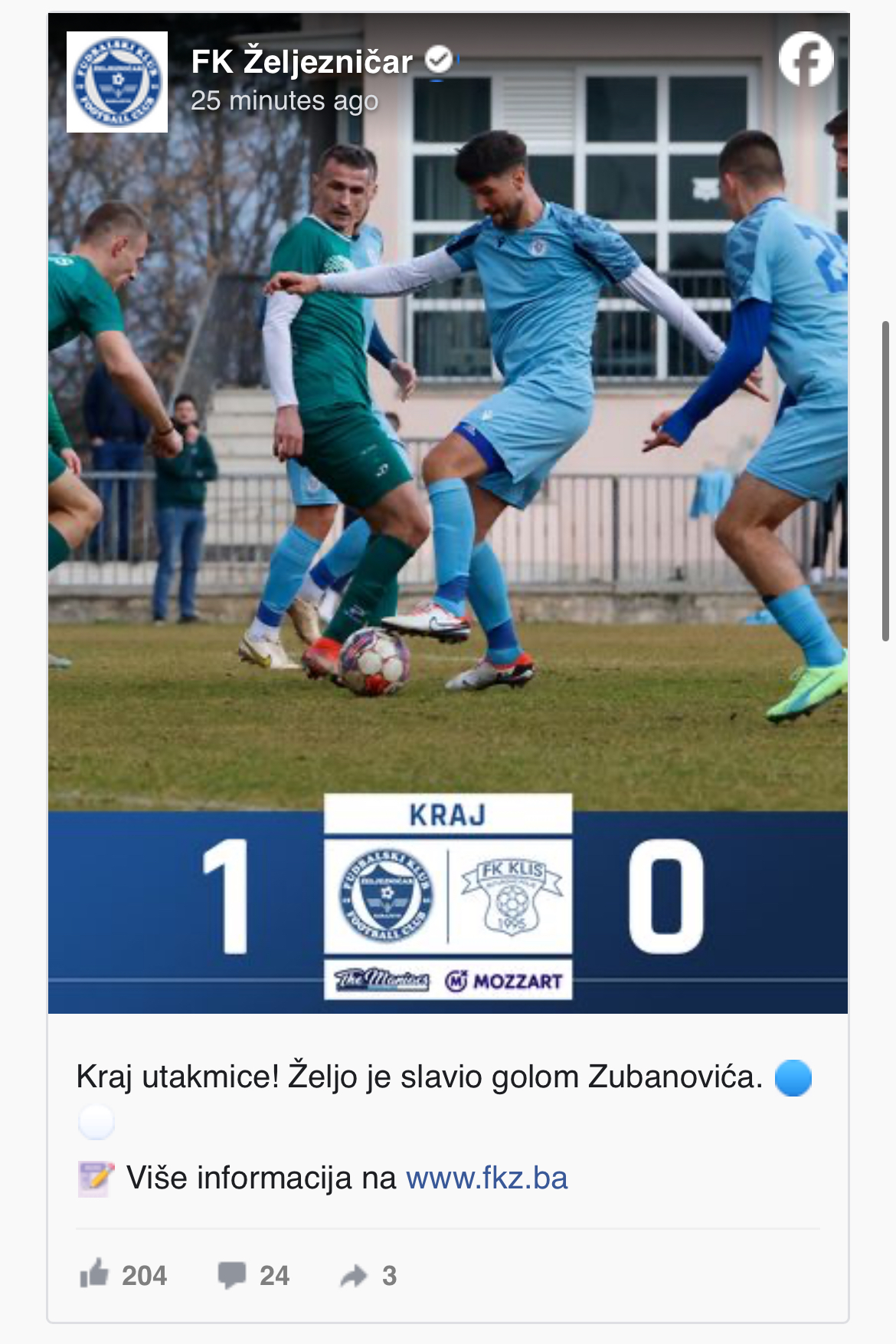 Imao je Željezničar još nekoliko dobrih prilika, ali se rezultat nije mijenjao do kraja meča.