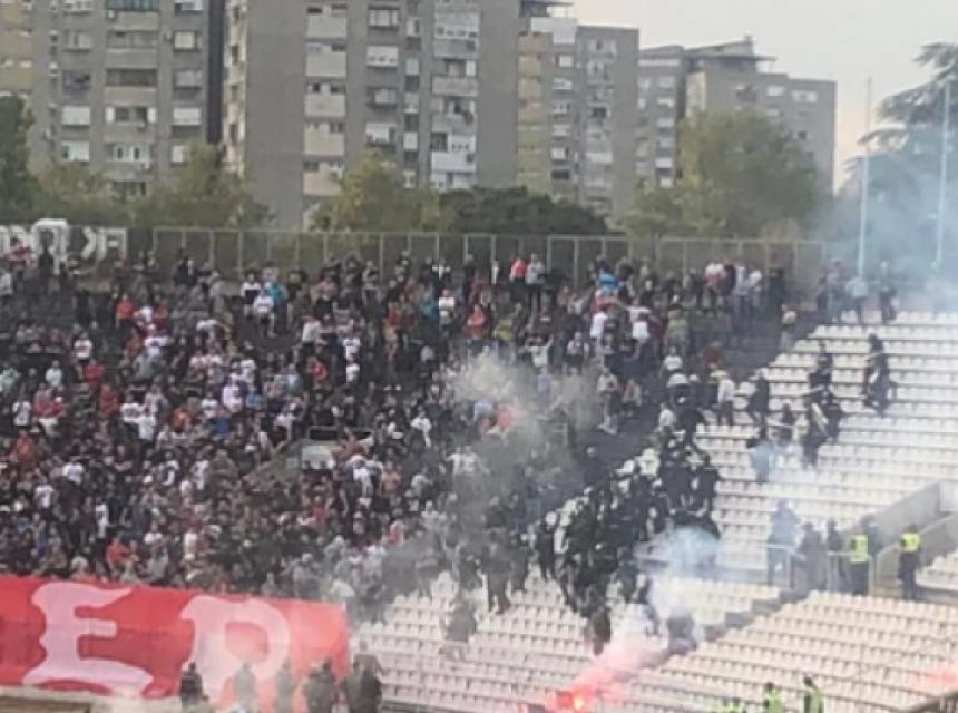 Na nekadašnjem stadionu JNA, prije utakmice došlo je do žestokog obračuna između gostujućih navijača "Delija" i policije.