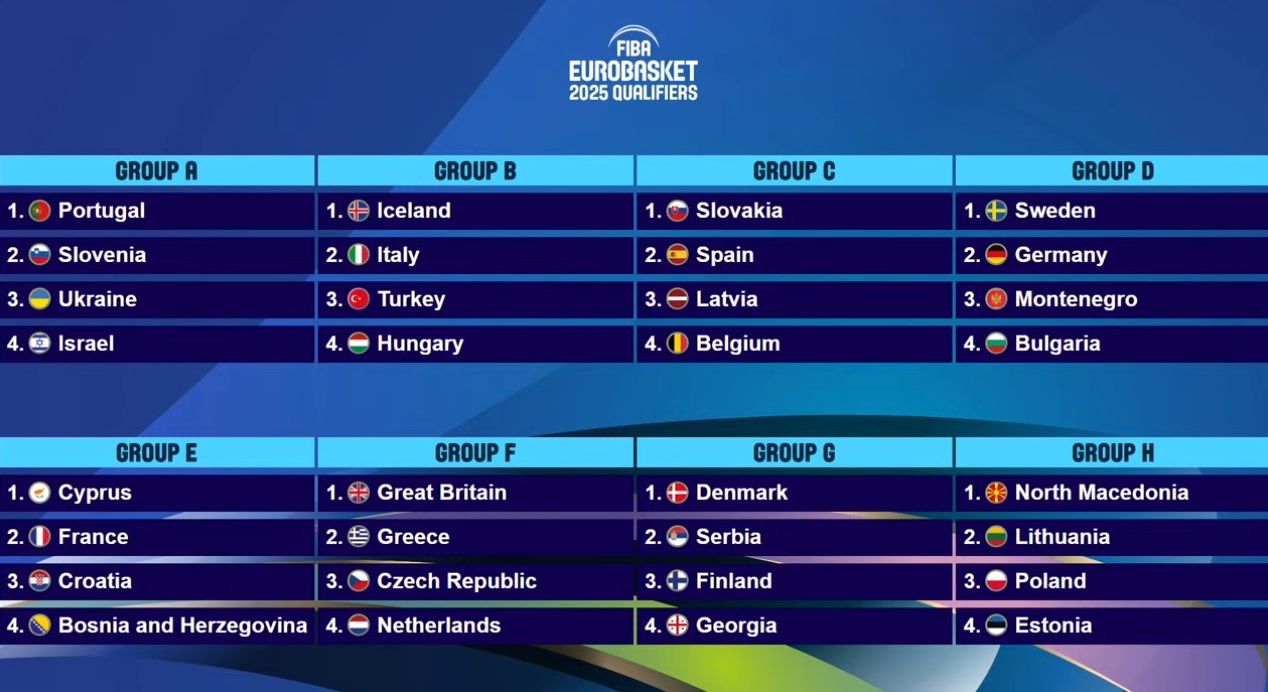 Na Eurobasket će se plasirati 24 selekcije, odnosno tri najbolje iz svake grupe.