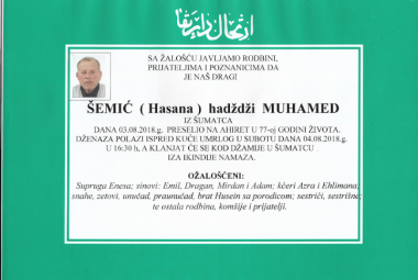 Na Ahiret preselio Šemić (Hasana) hadždži Muhamed