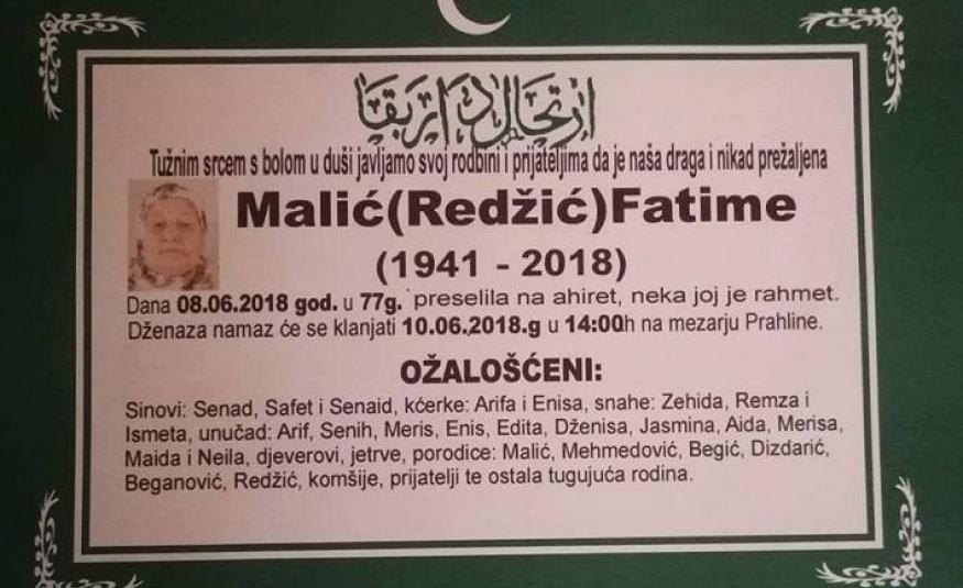 Na Ahiret preselila Ćatić (rođ. Ljubijankić) Hamida