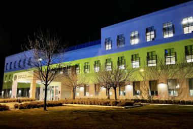 Zgrada Američke ambasade u bojama zastave Ukrajine