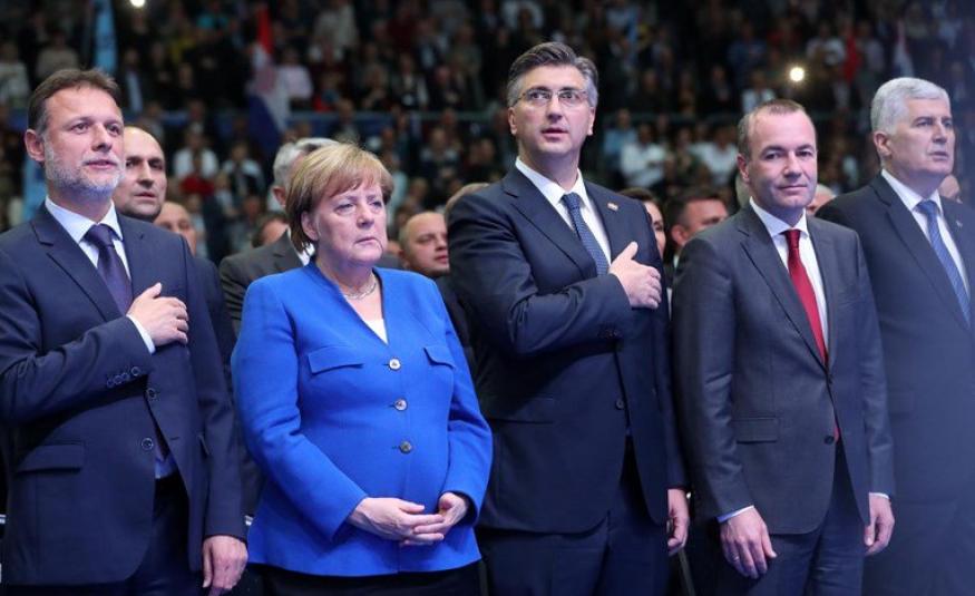 HDZ-ovci pred Merkel pričali o Balajburgu, pustili pjesmu Tompsona