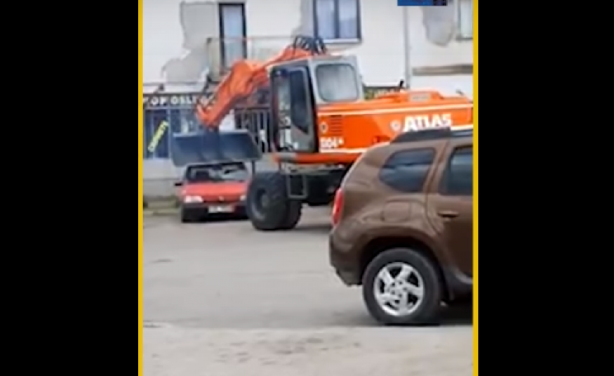 Incident u BiH: Bagerom uništio automobil dužniku (VIDEO)