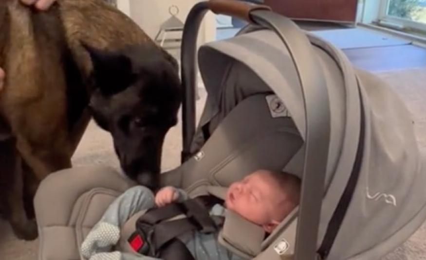 Belgijski ovčar upoznao novorođenče pa se rastopio od sreće