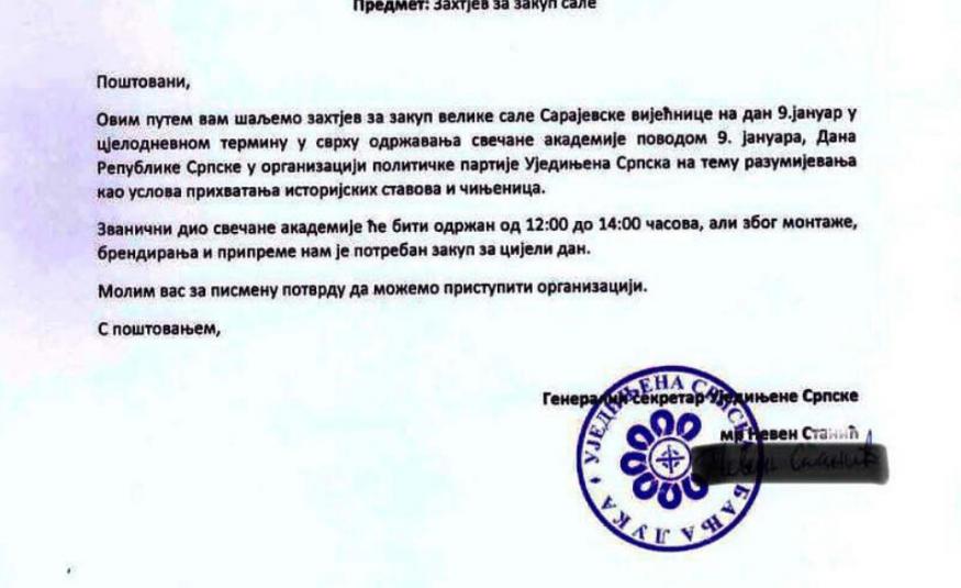Karić odbila provokativan zahtjev da se neustavni Dan RS-a obilježi u sarajevskoj Vijećnici