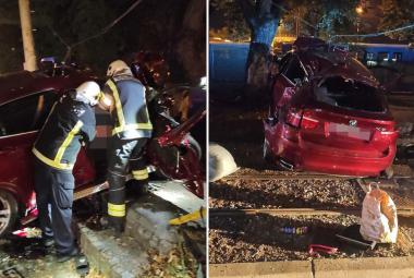 Skupocjeni BMW-e potpuno uništen: Bili na svadbi, pa se zabili u stub