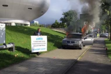 Bijesan vlasnik BMW-a odvezao svoj automobil i zapalio ga ispred sjedišta čuvene kompanije (VIDEO)