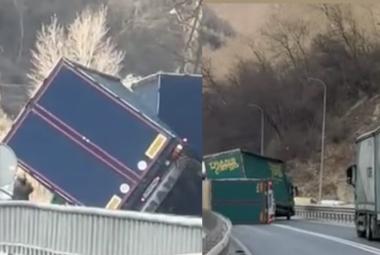U BiH se prevrnula dva kamiona: Orkanski vjetar ruši teretna vozila (VIDEO)