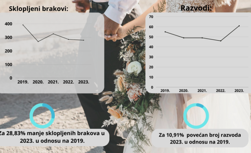 Velika Kladuša: Broj sklopljenih brakova za četiri godine smanjen za skoro 30%, povećan broj razvoda