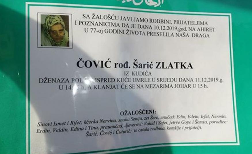 Na Ahiret preselila Čović (rođ. Šarić) Zlatka iz Kudića