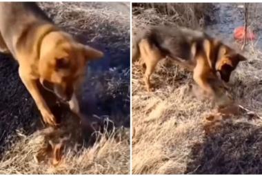 Dirljiva scena u Beranama: Pas pomaže u gašenju požara