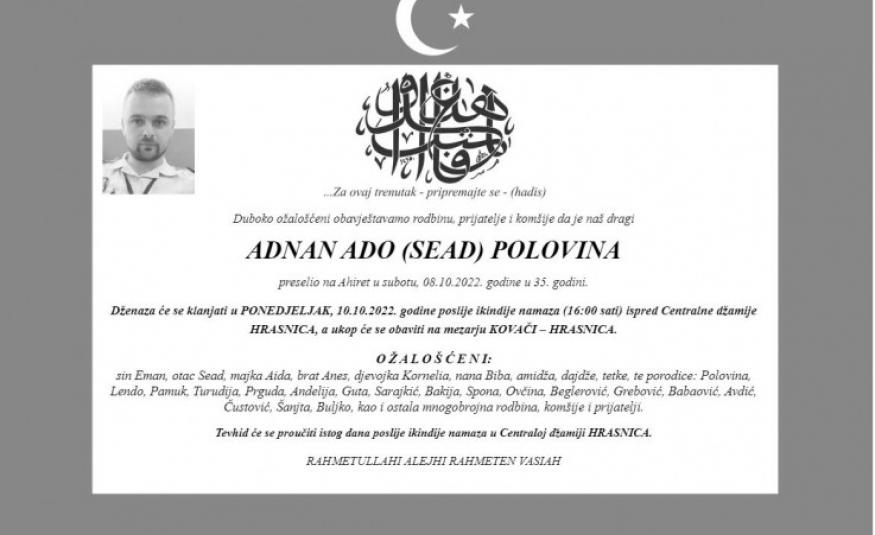 Poznat termin dženaze preminulom policijskom službeniku Adnanu Polovini: Iza njega ostali sin, djevojka i roditelji